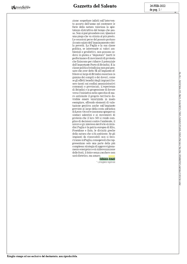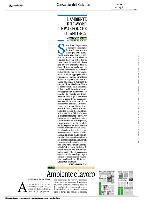 Articolo pubblicato sulla Gazzetta del Salento del 26-02-2022